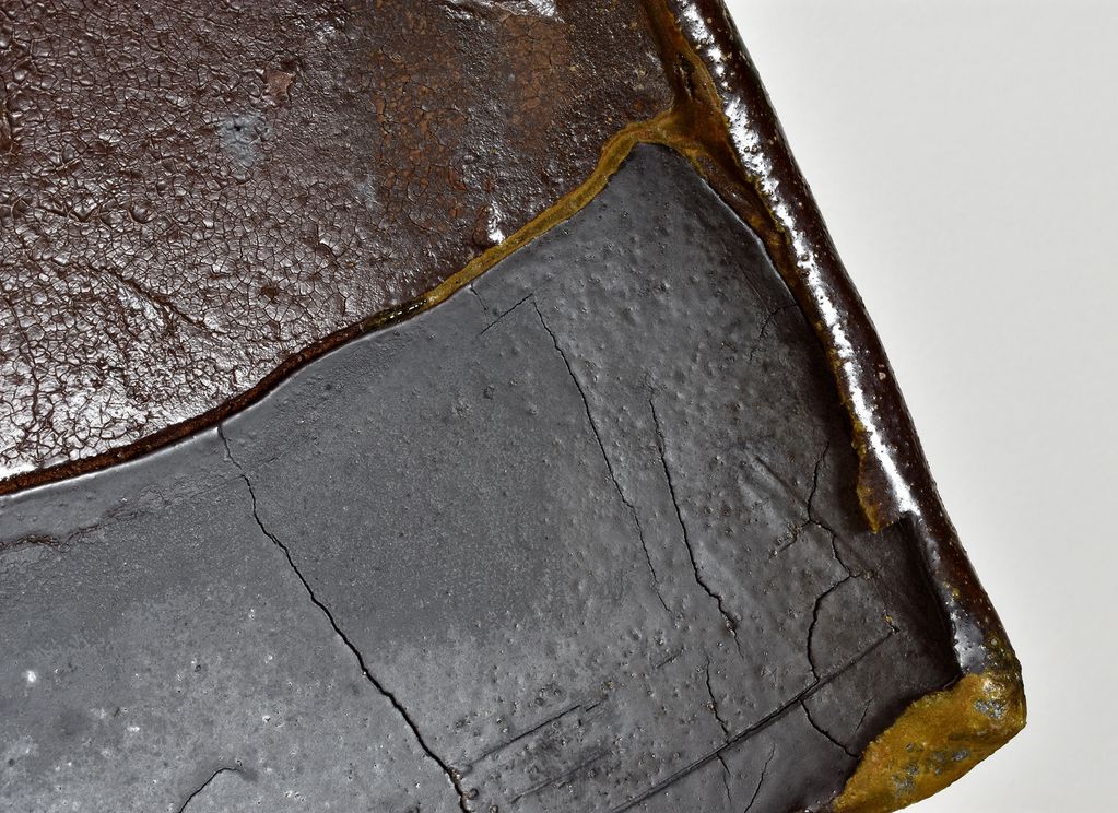 Detail of Wall Object, December 2020, wood fired iron bearing stoneware, 11.75" x 12.5" x 5.5"