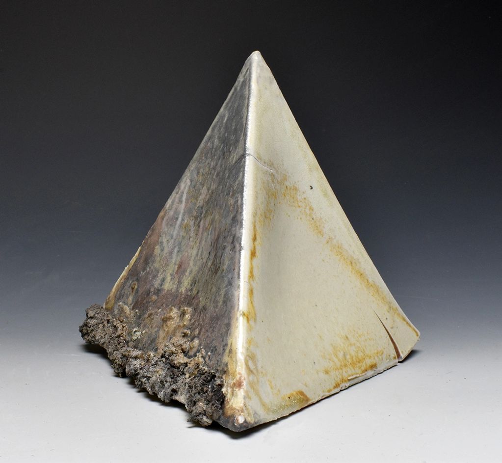 Warped Tetrahedra, November 2020, wood fired porcelain, 7" x 7" x 6"
