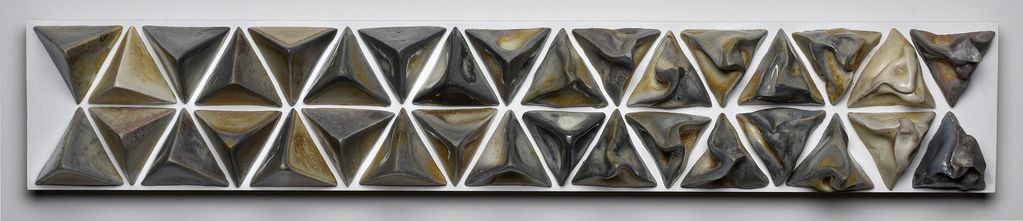 Topology Study, October 2020, wood fired porcelain, wood, epoxy, 5.25” x 29” x 3.75”